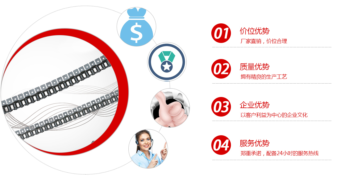 1、鏈條產品有各種不銹鋼、碳鋼輸送鏈條、雙節(jié)距輸送鏈條、空心銷軸鏈條、不銹鋼塑料平頂鏈、不銹鋼精密滾子鏈、特殊工礦輸送鏈、耐高溫輸送鏈條、非標鏈條、彎板非標鏈條、大節(jié)距輸送鏈條、各種鏈條用滾子(材質碳鋼、不銹鋼)等。